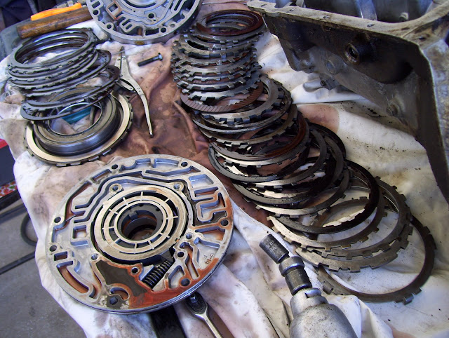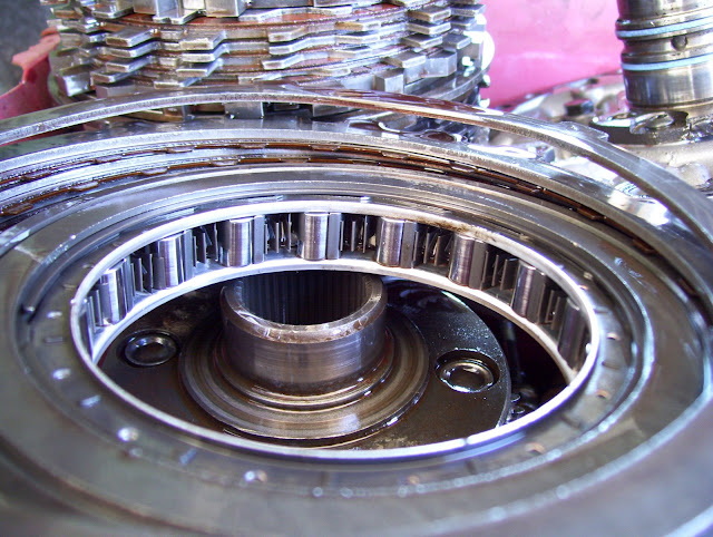 | 727620 | 2008-12-11 02:38:00 | Not sure but can ou rev up in N and then shift it in .. that scream .. You can do that - for a while or a few times - whatever occurs first. Have you ever seen the size of the parts that take that hit when you dump a transmission into gear from neutral? Look here and see for yourself. #1 (lh4.ggpht.com) This is the front pump and a small stack of the clutches and fiber friction material. BTW: The friction material is just sorta like a coating of paper. #2 (lh3.ggpht.com) This is the INTERMEDIATE sprag and it does not like to get slammed! |