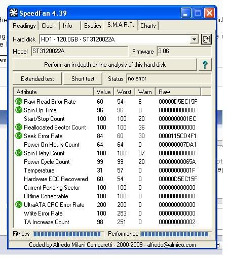 | 837761 | 2009-12-08 11:59:00 | Thanks! Problem - I have about 45 GB of 'stuff' that I want to keep, and I am slowly wading through the crap, but I might be able to remove 10-15GB at the most. These are all the harddrives in the house: 1x 40GB(My current drive - full) 1x 20GB(filled) 1x 100GB(my dad's, and he has filled it over the years, so no chance of space there) 1x 120GB(the problematic drive) 1x 30GB(Too small, and in my brother's pc) 1x 10GB ^^^^^^^^^^^^^^^^^^^^ :( There is probably no chance of getting another drive till after christmas, and my internet cap is not big enough to upload to an online backup site. I have a new 550W PSU being delivered, as I have been skeptical that the one I have is to small/bad (430W - Came with CoolerMaster 331 case). Power plug - check. It's been unplugged, and replugged. The SMART status: i778.photobucket.com |