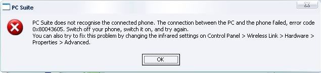 | 521627 | 2007-02-01 07:46:00 | Looks like this error can appear if you're using the wrong cable (discussions.europe.nokia.com) Have a look here (discussions.europe.nokia.com) |