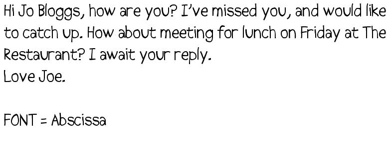 | 492765 | 2006-10-19 23:08:00 | I have a couple of good suggestions, view them here (fidelius.quantoaduro.com) and here (fidelius.quantoaduro.com). Abscissa download here (www.webpagepublicity.com) MC Regular download here (www.webpagepublicity.com) Fonts retrieved from here (www.webpagepublicity.com). Keep in mind though, If the person on the receiving end doesn't have the font you are using for your email, then they wont be able to see that font, which makes this endeavour pointless. |